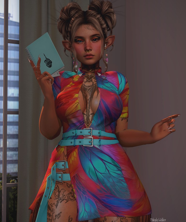 – pOOnsh has a cute dress “Marian” out this round. There are 14 colors total, as well as 7 prints. The belt can be colored separately, and there are 4 metal colors. The dress is rigged to fit GenX classic & curvy, Reborn/Juicy/Waifu and Legacy/Perky!